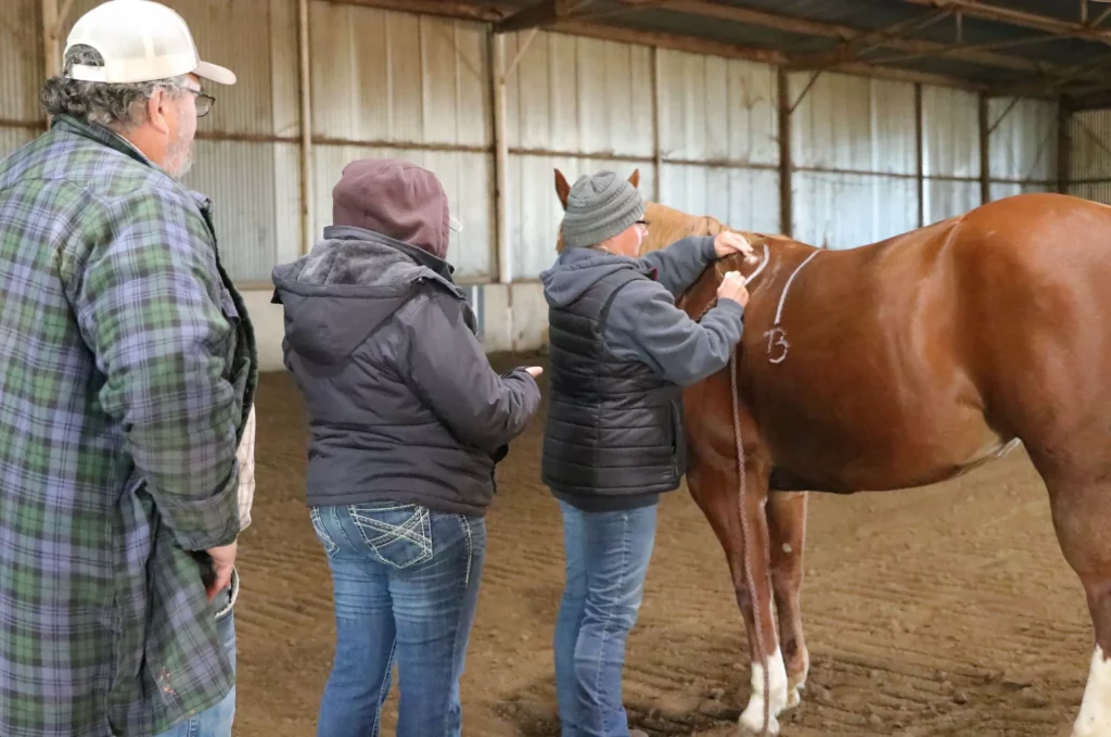 – It starts with a detailed examination of the horse’s conformation, including withers shape, back curvature, shoulder position, and overall structure.